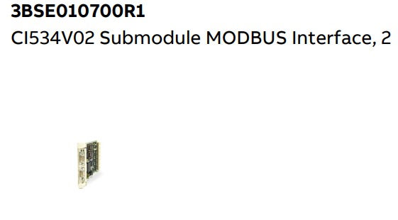 El ABB CI534V02 es un submódulo de interfaz MODBUS diseñado para permitir la comunicación entre los sistemas de control ABB y los dispositivos de campo compatibles con MODBUS.