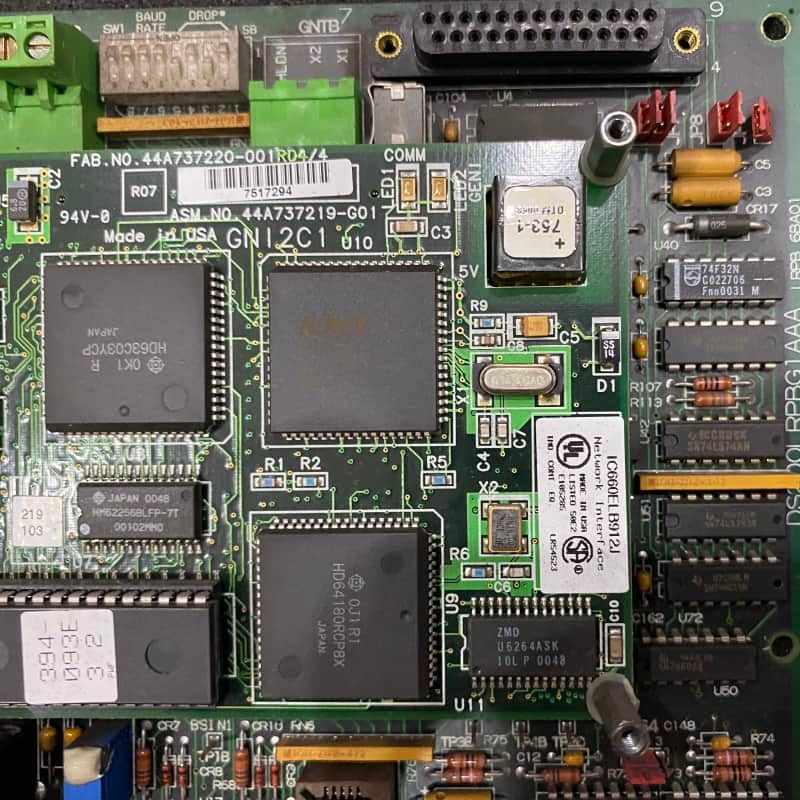 Funcionalmente, su función principal es la protección de línea para los sistemas de control de turbinas, respaldada por hardware especializado: siete puentes configurables y dos bloques de terminales. Los puentes sirven para propósitos específicos: JP1–JP3 para la indicación de fusible fundido del filtro de línea MOV/CA, JP4/JP7 para la detección de corriente de tierra analógica del lado CA/CC, JP5 para la aplicación de voltaje del puente de la resistencia de puesta a tierra y JP6 para el filtrado de rizado SCR. También se incluyen puntos de prueba para las comprobaciones de mantenimiento, y la placa se monta en separadores de otro componente de la unidad, con cables de señal que se originan en ese componente.