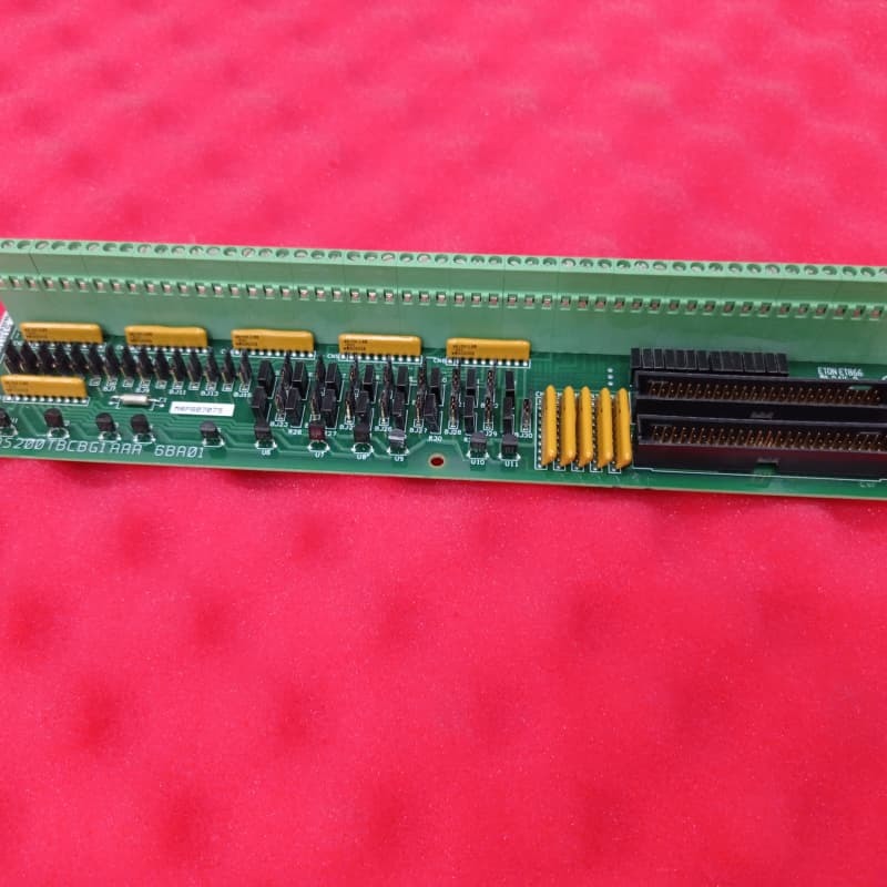 Físicamente, el módulo es una tarjeta analógica larga y estrecha que presenta un bloque de terminales largo a lo largo de un borde, conectores de clavijas verticales, interruptores de puente y matrices de red de resistencias. Su supresión y limitación de voltaje se basan en componentes estandarizados de la serie Mark V, incluidos condensadores, resistencias, diodos y circuitos integrados especializados. Los detalles clave sobre su hardware y especificaciones también están codificados en su número de producto: “DS200” confirma el ensamblaje normal de Mark V y la fabricación nacional en EE. UU.; “TBCB” es la abreviatura funcional de su función de módulo de terminación; “G1” lo ubica en el Grupo 1 de Mark V con un revestimiento protector de PCB estándar; y el “AAA” final denota dos revisiones funcionales con clasificación A y una revisión de ilustraciones con clasificación A.